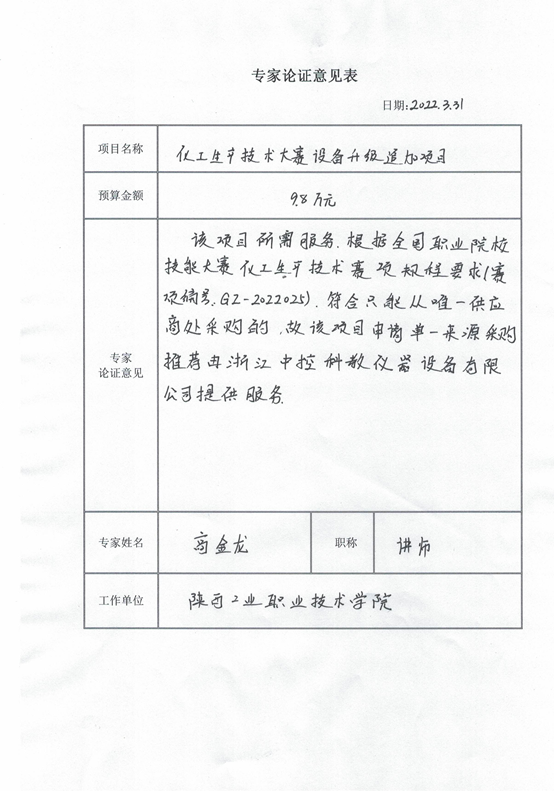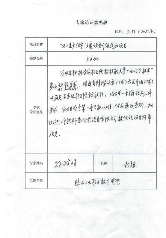 根据2022年全国职业院校技能大赛化工生产技术赛项规程(赛项编号:GZ-2022025)要求及相关专家论证意见,陕西工业职业技术学院化工生产技术大赛设备升级追加项目拟采用单一来源采购方式,该项目拟由浙江中控科教仪器设备有限公司承担。现将有关情况向潜在的供应商广泛征求意见。征求意见期限从2022年3月31日起至2022年4月8日止。